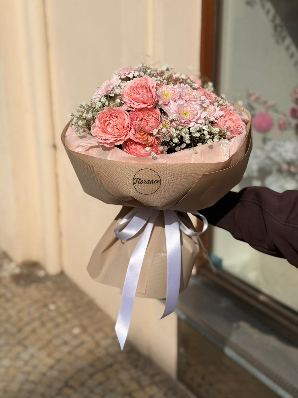 Bohatá a elegantní kytice v jemných růžových tónech, která zaujme svou velikostí i romantickým stylem. Kombinace pastelových květů působí luxusně, svěže a něžně zároveň. Ideální jako dárek z lásky, k narozeninám, k výročí nebo kdykoliv, když chcete udělat radost opravdu krásnou kyticí.