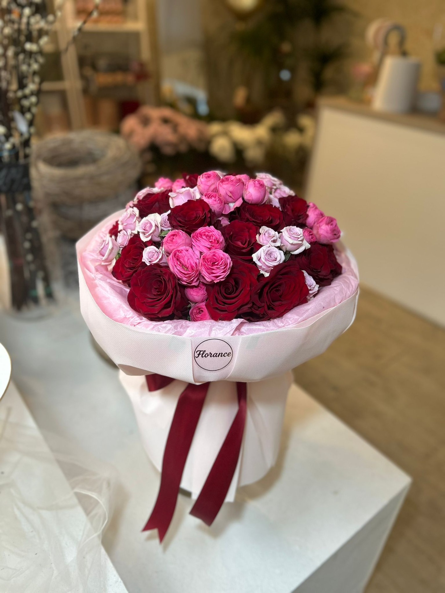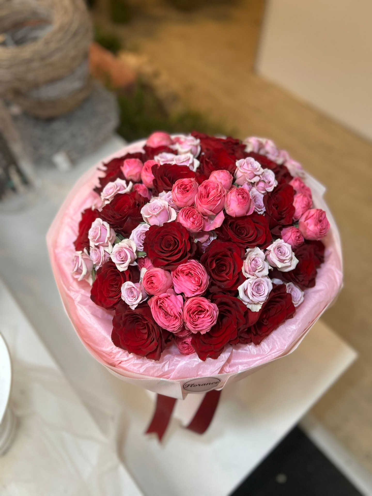 Luxusní a bohatá kytice plná růží v romantických červených, růžových a jemných pastelových tónech. Rosé Passion je symbolem lásky, elegance a výjimečných emocí. Perfektní volba k narozeninám, výročí, z lásky nebo když chcete opravdu okouzlit.